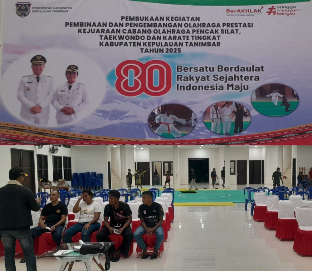 Saumlaki, mediatifatanimbar.id – Dalam rangka memeriahkan Hari Ulang Tahun Republik Indonesia (HUT RI) ke 80 tahun 2025, Kabupaten Kepulauan Tanimbar melalui Dinas Pemuda dan Olahraga (Dispora), menyelenggarakan Ajang Kejuaraan Daerah (Kejurda) Olahraga bela diri Pencak Silat, Taekwondo, dan Karate.