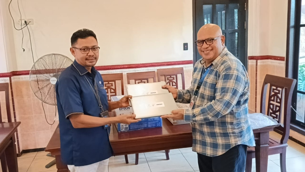 Dalam kesempatan tersebut, dilakukan penandatanganan berita acara serah terima barang berupa: 2 unit Laptop Lenovo IdeaPad 3 14IAU7, 1 unit Proyektor EB-X51 dan 1 unit Printer Epson EcoTank L3250. Simon Lolonlun hadir bersama PLT Bendahara PWI Kabupaten Kepulauan Tanimbar, Yohanis Fenanlampir serta sejumlah anggota biasa maupun anggota muda PWI.
