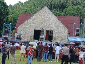 Usai acara adat, Uskup bersama para pastores dan rombongan diantar oleh regu penari dan umat setempat menuju ke gereja St. Bunda Allah untuk proses pelaksanaan peresminan.