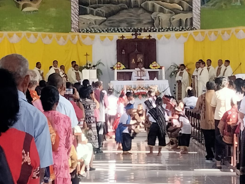 Misa yang dimulai pukul 16.00 WIT itu menjadi momen istimewa karena digelar di kampung halaman RD Julianus Batvin sendiri.