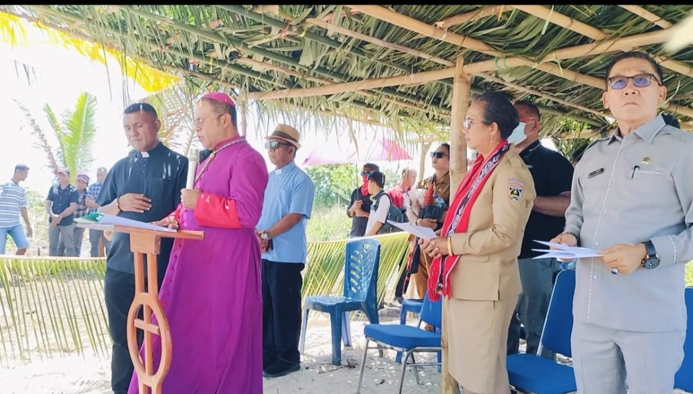 Peletakan batu pertama oleh Uskup secara simbolis menandai dimulainya pembangunan arca yang akan menghormati identitas budaya lokal melalui wujud Bunda Maria yang mengenakan busana adat Tanimbar.