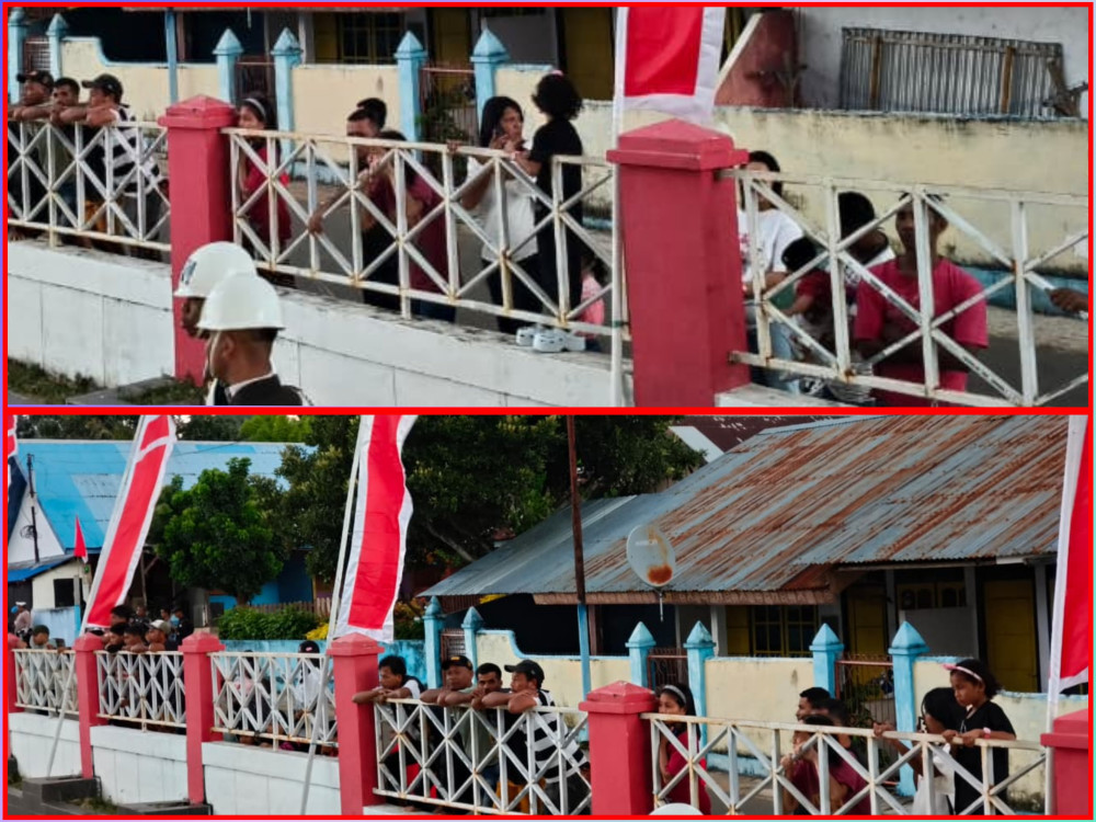 Wakil Bupati Kepulauan Tanimbar, dr. Juliana Chatarina Ratuanak, bertindak sebagai inspektur upacara. Upacara dimulai pukul 17.45 WIT dengan tertib, namun kehadiran pejabat daerah jauh dari harapan. Bagian tribun selatan dan kursi depan podium utama hanya terisi sebagian kecil, sementara kursi-kursi lain tampak “kosong menganga”.