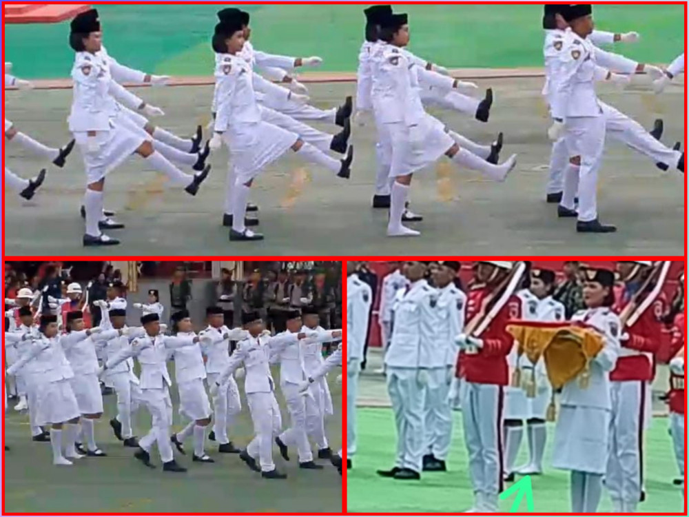 Moment tak terduga terjadi saat pasukan Paskibra menjalankan tugas mengibarkan bendera merah putih.