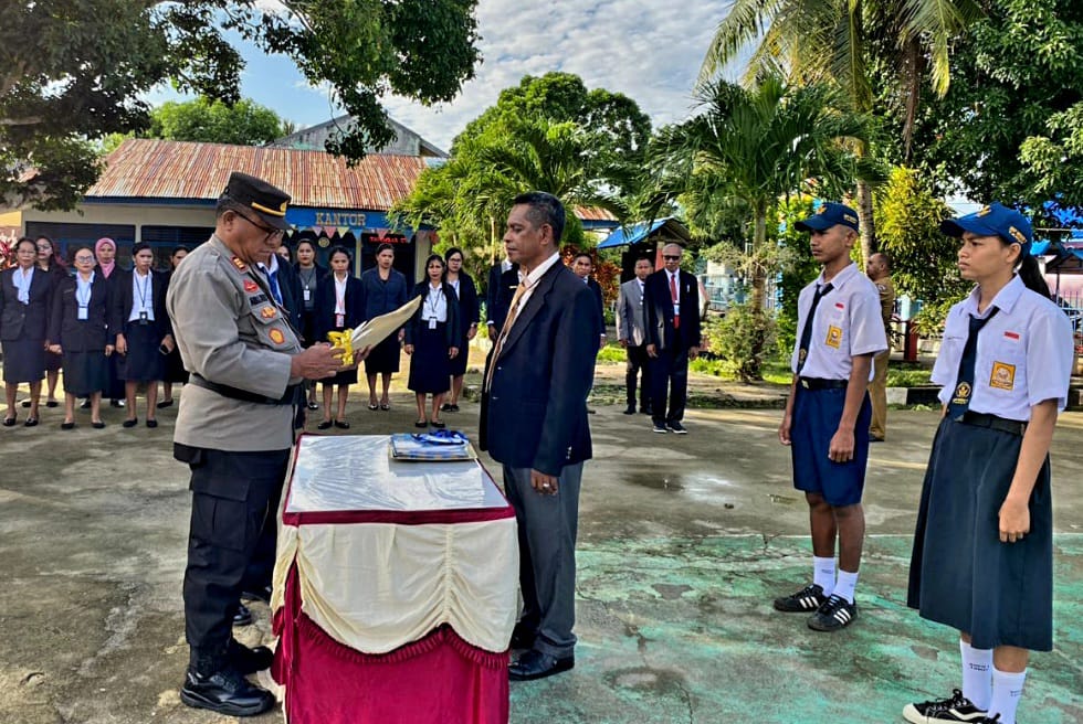 Kapolsek Tanimbar Utara, Ajun Komisaris Polisi (AKP) Ams Layan, bertindak sebagai inspektur upacara sekaligus membuka secara resmi pelaksanaan ujian.