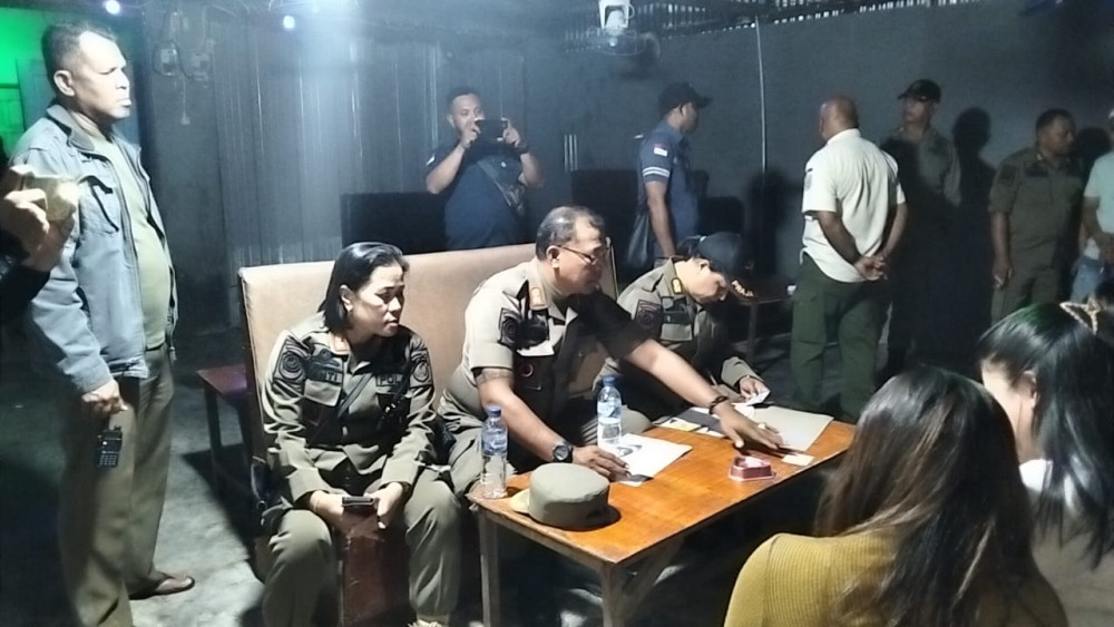 Aktivitas sidak oleh Satpol PP Kepulauan Tanimbar di salah satu tempat karaoke di kota Saumlaki, Rabu (11/6/2025)